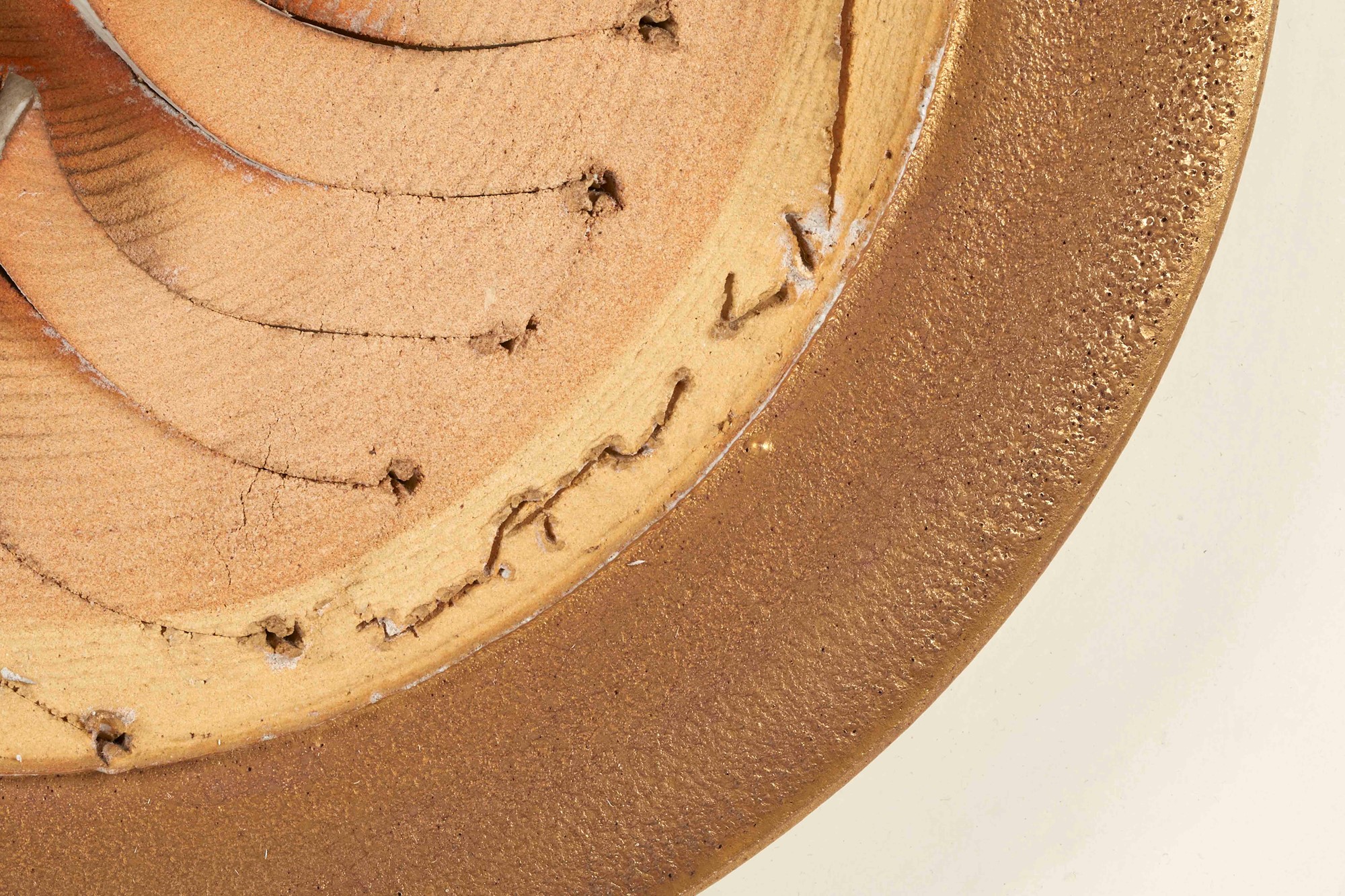 Carlo Zauli (Faenza, 18/08/1926 - Faenza, 14/01/2002) "Senza titolo" 1971 Piatto in ceramica su tavola in legno Cm 4x36,5 Ø