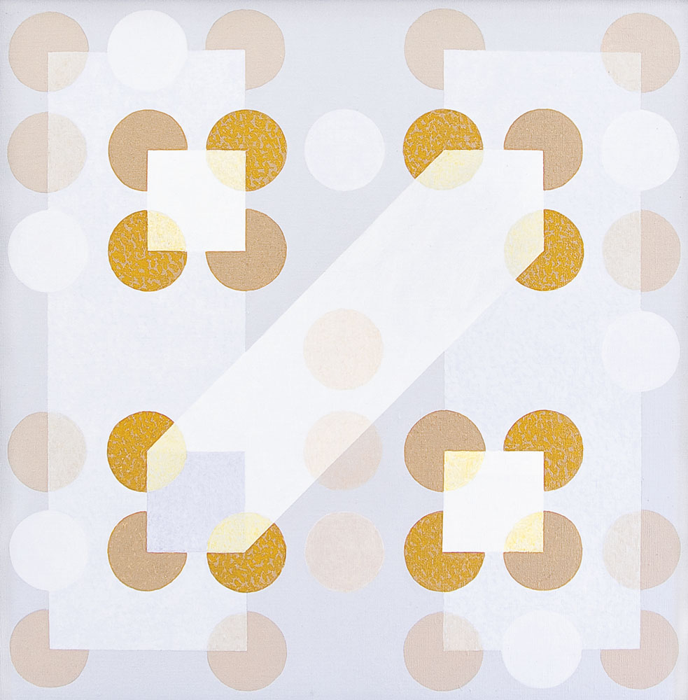 acrilico su tela cm. 61x61, firma, anno, etichetta dell'esposizione Arte Genova, timbri ed etichetta della Galleria Lagorio Arte Contemporanea (BS) al retro, opera registrata presso l'Archivio Nangeroni come da dichiarazione su foto.