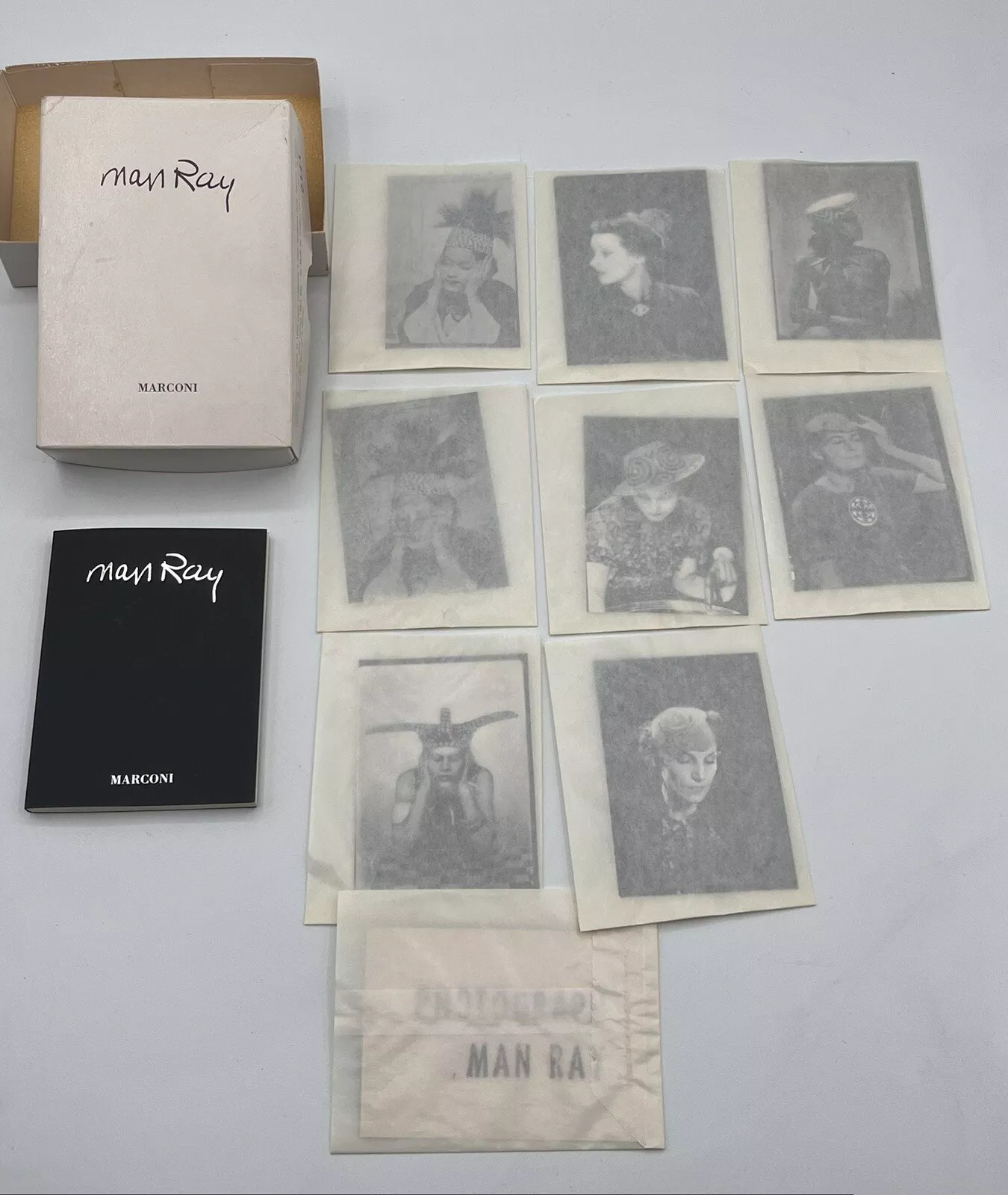 Certificato di autenticitàScatola di cartone contenente un libretto con 35 riproduzioni di fotografie e una raccolta di 9 copie in facsimile tratte da stampe fotografiche a contatto eseguite da Man Ray nel 1937 dai negativi originali.