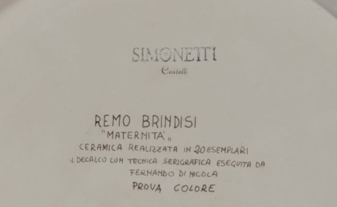 BRINDISI REMO Roma (Roma) 1918 Maternità Ceramica serigrafata realizzata in...