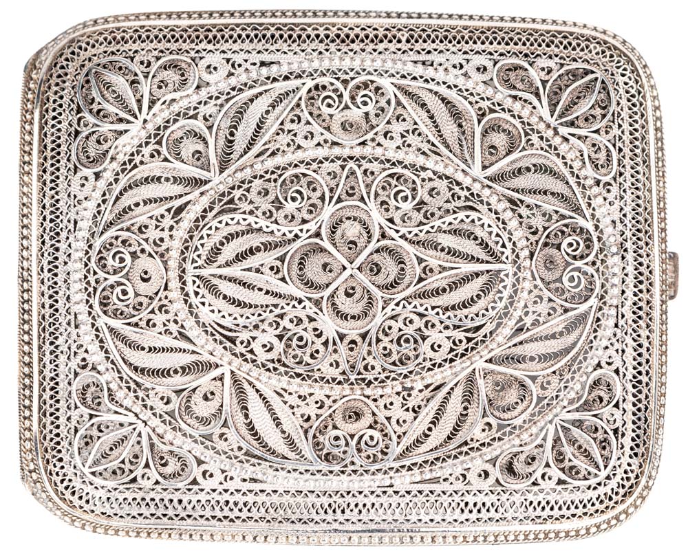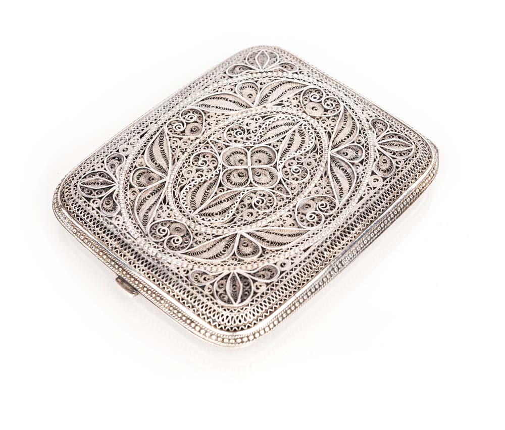 Portasigarette da tasca in filigrana d'argento 800/000 cm 10x8x1 - gr. 88...