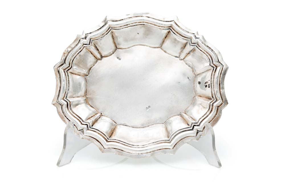 Vassoietto ovale sagomato, Roma, Stato Pontificio cm 23x20 - gr. 384 tesa con orlo modanato