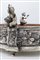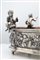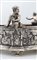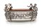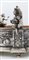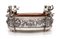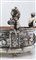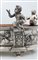 Questo centrotavola rivela tutta la maestria dello scultore nel fondere decorazione e narrazione mitologica. Le figure, modellate con finezza e movimento, animano la sommità della fioriera trasformandola da elemento d’arredo a piccola scena teatrale. L’argento cesellato cattura la luce, esaltando i dettagli anatomici e le espressioni vivaci dei fauni, mentre la forma ovale conferisce equilibrio e armonia all’insieme. Ne risulta un’opera elegante e al tempo stesso fantasiosa, emblematica della capacità di Avolio di combinare tradizione classica e gusto moderno.