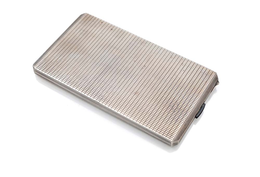 Portasigarette in argento, Italia cm 14x7,5x0,8 - gr. 146 caratterizzato da sottili linee verticali ed orizzontali a creare una minuziosa quadrettatura rettangolare