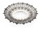 Centrotavola ovale in argento cm 6,5x32x28 - gr. 500 piatto a forma di corolla circondato da un ampio bordo traforato caratterizzato da due ordini di grappoli e foglie di vite; piedi arcuati