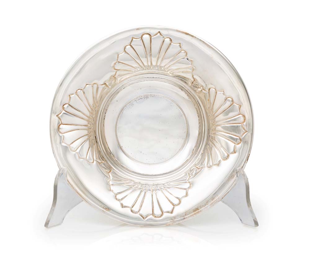 Vaschetta circolare in argento 800/000 lavorato a mano cm 4x20 - gr. 168 con quattro grandi palmette stilizzate incise diametralmente opposte
