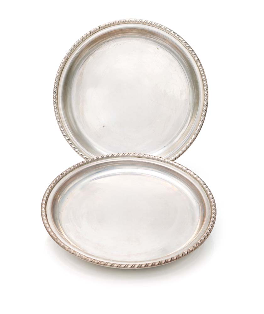 Coppia di piattini sottobottiglia con profilo cordonato diametro cm 13,7 - gr. 170