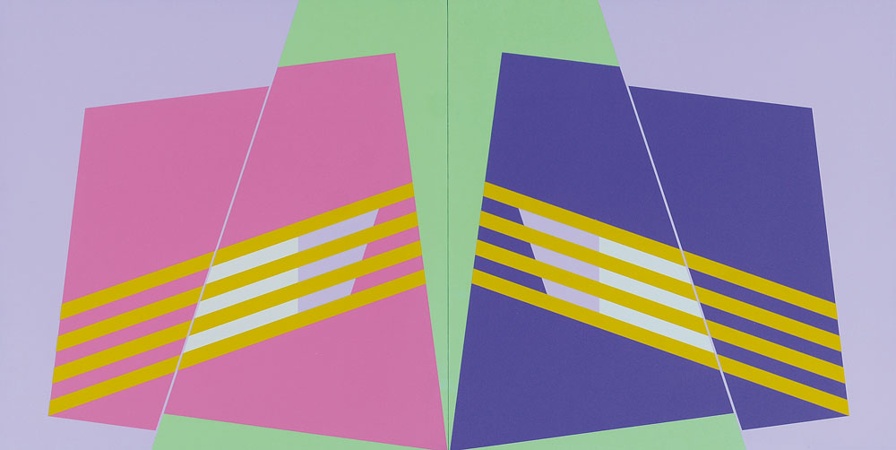 acrilici su due pannelli nobilitati cm. 38x76, firma, titolo, anno, archivio ed etichetta dell'artista al retro, dichiarazione d'autenticità e archivio dell'artista su foto.