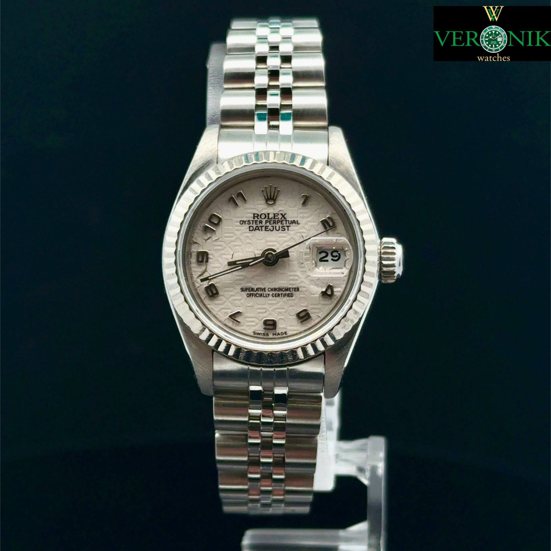Marca Rolex Modello (Orologio) Lady-Datejust Numero di referenza 69174 Carica Automatico Materiale della cassa Acciaio Materiale cinturino Acciaio Anno di produzione 1987 (Anno approssimativo) Condizione Usato L'articolo presenta segni di usura lievi, come ad esempio graffi leggeri, ma non percepibili al tatto. Corredo documenti originali, no box Carica Automatico Materiale della cassa Acciaio Diametro 26 mm Impermeabile 10 ATM Materiale lunetta Oro bianco Vetro Vetro zaffiro Numeri sul quadrante Senza numeri Cinturino Materiale cinturino Acciaio Colore cinturino Acciaio Chiusura Déployante Materiale chiusura Acciaio Quadrante computer dial con crepage - COMMISSIONE D’ASTA 25%