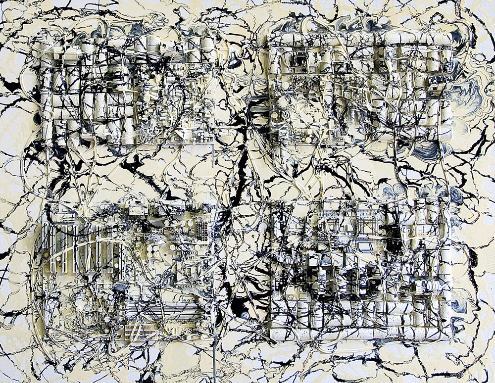 tecnica mista e collage di schede elettroniche su tavola cm. 70x90, titolo, firma e anno al retro, dichiarazione d'autenticità dell'artista su foto.