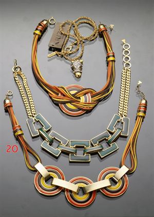 LANCETTI Collana in cordoncino colorato con elementi circolari centrali...