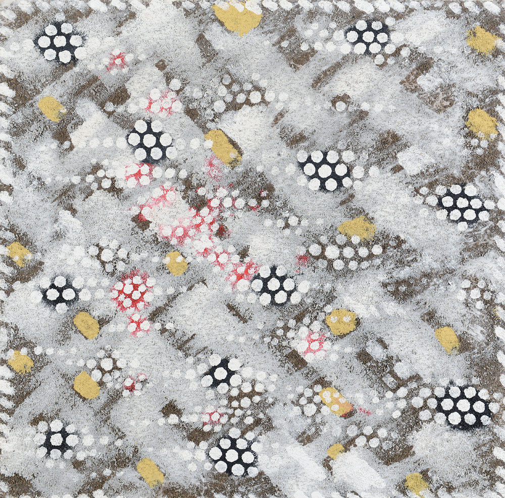 industrial paint su tela cm. 70x70, firma, titolo, anno e dedica ad personam al retro, dichiarazione d'autenticità e archivio dell'artista su foto, opera priva di cornice.