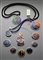 KRIZIA Ciondolo smaltato a forma di piccolo disco con "K" nera impressa su base bluette ed aragosta, anni '80 Diam cm 5,5 1980's black corded choker with round blue and coral color enamel with black K motif