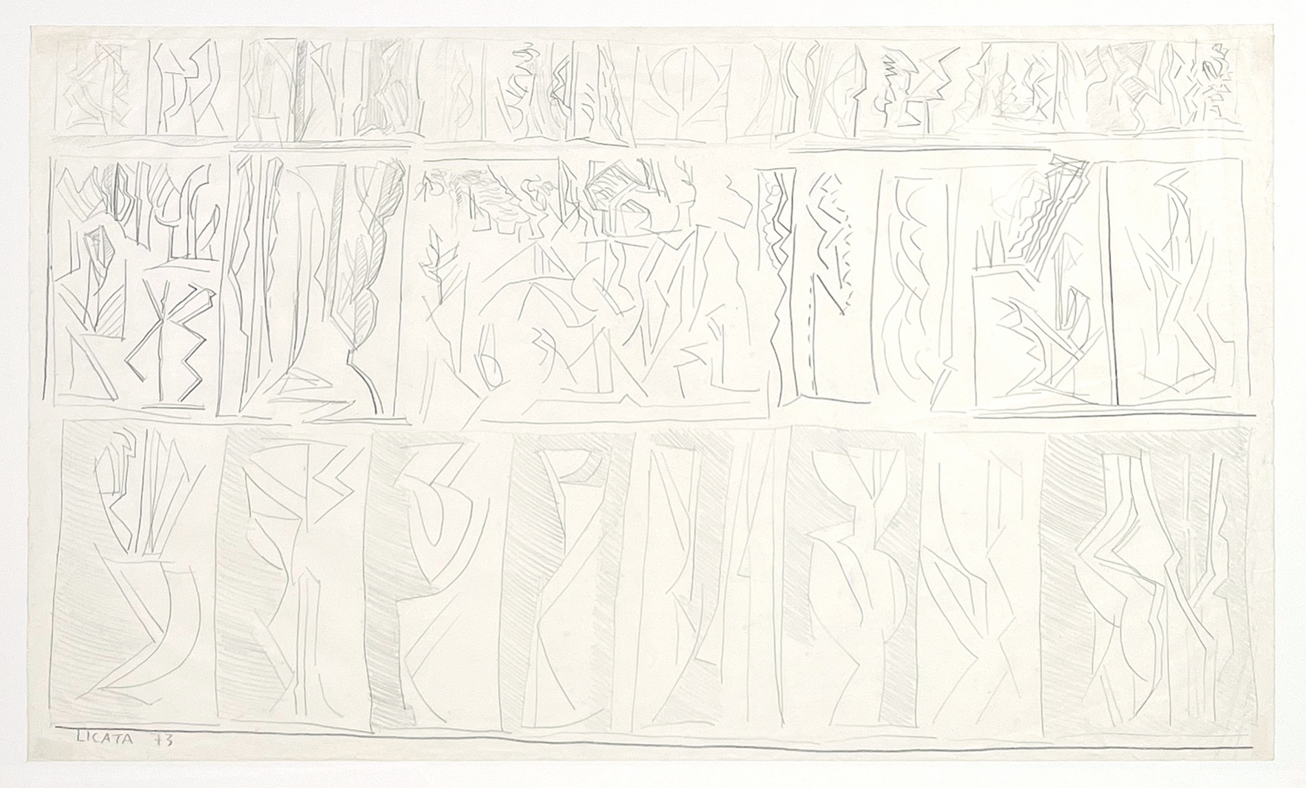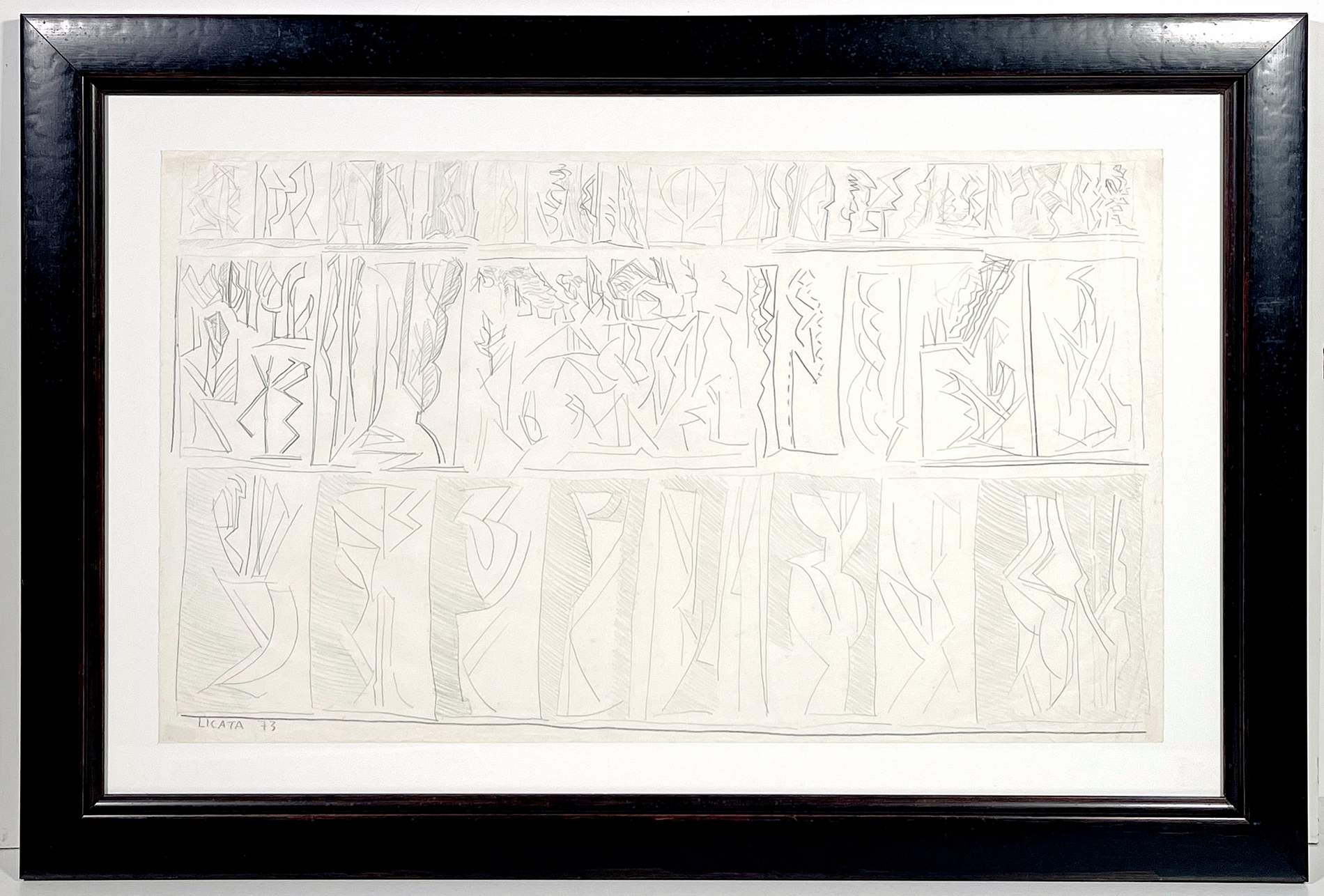 LICATA RICCARDO, 38 x 65 cm, Senza Titolo, matita su carta sottile, anno 1973, opera registrata presso l'archivio delle opere di Riccardo Licata rep. Nr. 087/025. Certificato di archiviazione e autenticità su fotografia a cura dell' Archivio Generale delle opere di Riccardo Licata - Studio d'arte G.R. Sacile (PN)