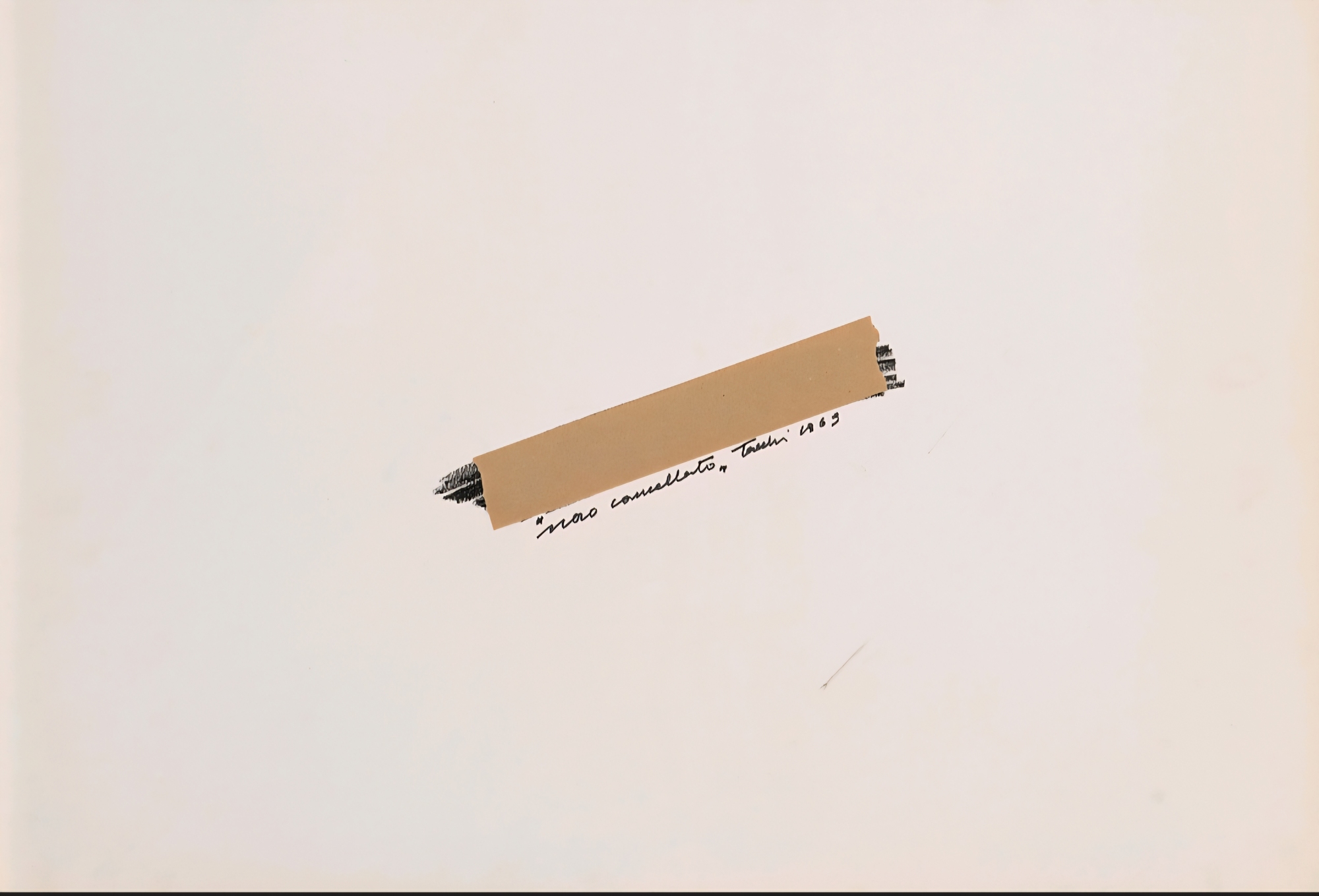 CESARE TACCHI,1940-2014, tecnica mista e collage su cartoncino 1969, cm 49,5 x 70: Firmato e datato 1969 al centro, Opera registrata presso l’Archivio Cesare Tacchi Roma, Titolo “ Nero cancellato”,