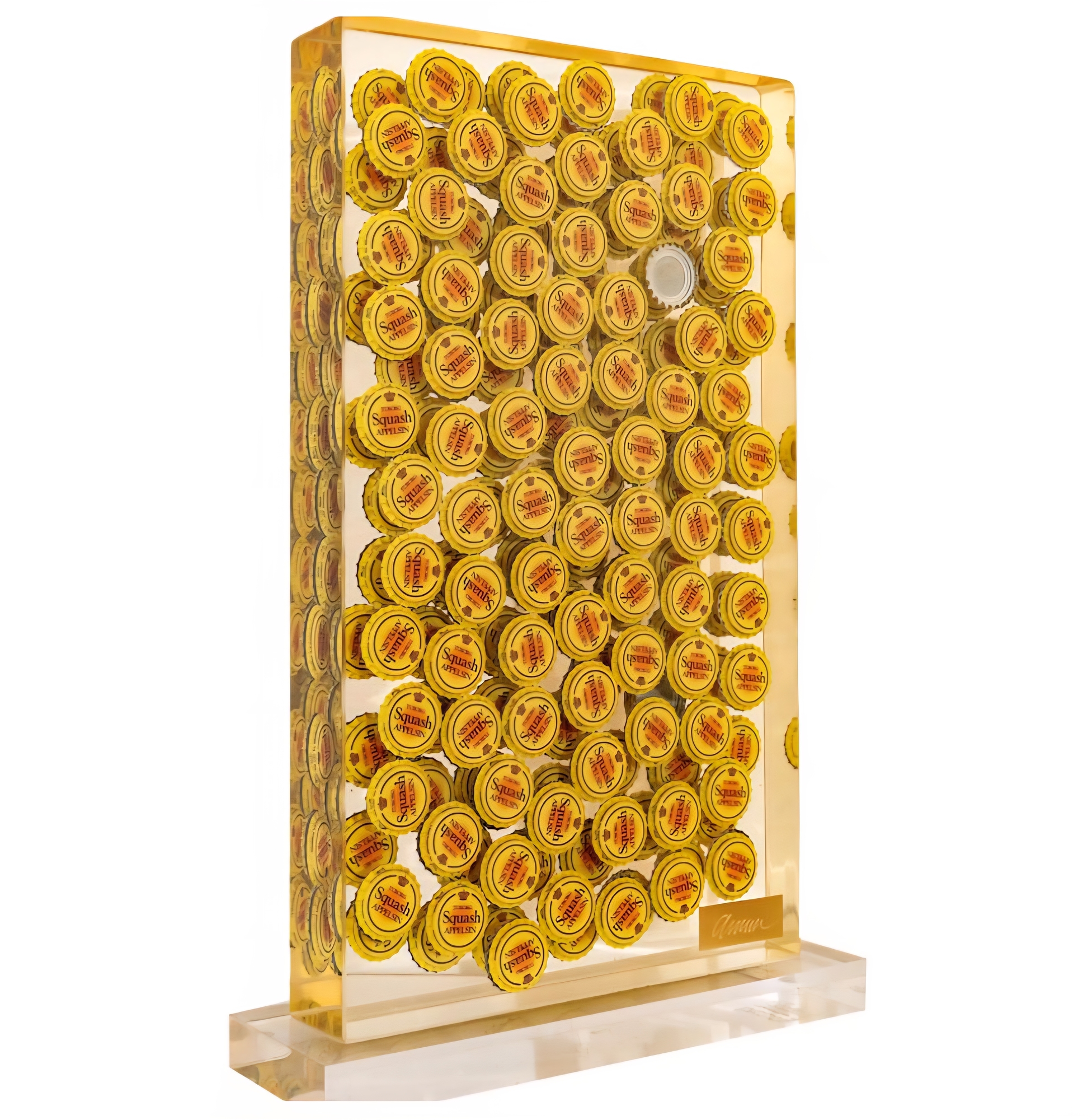 FERNANDEZ ARMAN, 1928-2005, inclusione di tappi in resina 1996, cm 42 x 25 x 5: Titolo Bon Santè, 1996, es. 13/30, certificato di autenticità e provenienza a cura di studio Agorà Srl su foto