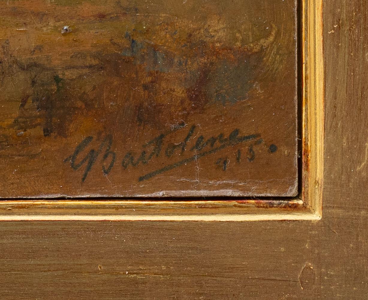 - Giovanni Bartolena nacque a Livorno il 24 giugno 1866 in una famiglia benestante che contava già artisti tra le proprie fila. Fu lo zio, pittore stimato di scene belliche e ritratti, a trasmettergli i primi rudimenti dell’arte. Da giovane Bartolena si trasferì a Firenze per studiare alla Scuola Libera del Nudo sotto la guida del maestro Giovanni Fattori, entrando in contatto con l’ambiente dei Macchiaioli e facendo amicizia con altri artisti come Telemaco Signorini e Silvestro Lega.Nonostante l’ambiente di studio, la sua esuberanza e il gusto per una vita mondana spesso lo allontanarono dall’accademia. Una crisi economica familiare negli anni ’90 lo costrinse a guardare con maggior serietà alla pittura. Nel 1892 espose per la prima volta in pubblico alla Promotrice di Torino e negli anni successivi presentò suoi lavori anche a Firenze. Il suo cammino però subì interruzioni: nel 1898 si trasferì a Marsiglia, dove visse per un breve periodo, lavorando come conducente di tram a cavalli, prima di rientrare in Italia e stabilirsi a Lucca e poi a Firenze.Dopo la Prima guerra mondiale fece ritorno a Livorno. In quegli anni iniziò una fase intensa e produttiva: si dedicò con continuità a nature morte, paesaggi, marine e vedute di ambienti familiari alla sua terra. Nel 1925 un mercante tessile livornese divenne suo mecenate e nel 1926-1927 Bartolena tenne a Milano la sua prima mostra personale, accolto favorevolmente dalla critica. Seguì una serie di partecipazioni a esposizioni nazionali, tra cui la Biennale di Venezia e la Quadriennale di Roma.Il suo stile, pur radicato nella tradizione derivata dai Macchiaioli, si caratterizzò per un uso intenso del colore, una tavolozza vivace e una pennellata spontanea, capace di restituire con immediatezza la luce, i contrasti e l’atmosfera della natura e degli oggetti. Predilesse soggetti come cavalli, paesaggi rurali, nature morte con frutta o fiori, marine e scene di campagna. La sua pittura mostrava un forte coinvolgimento emotivo e una sensibilità sincera verso la realtà, filtrata attraverso una visione impressionista e materica.Pur godendo di una certa notorietà critica, Bartolena visse spesso in condizioni precarie e mantenne una vita segnata dalla solitudine e da scelte indipendenti: rifiutò legami stabili con galleristi o mercanti, preferendo mantenere la propria libertà creativa. Questo atteggiamento lo portò a vendere le sue opere quasi esclusivamente per necessità, senza mai cercare compromessi commerciali.Giovanni Bartolena morì il 16 febbraio 1942 a Livorno in estrema povertà e solitudine.