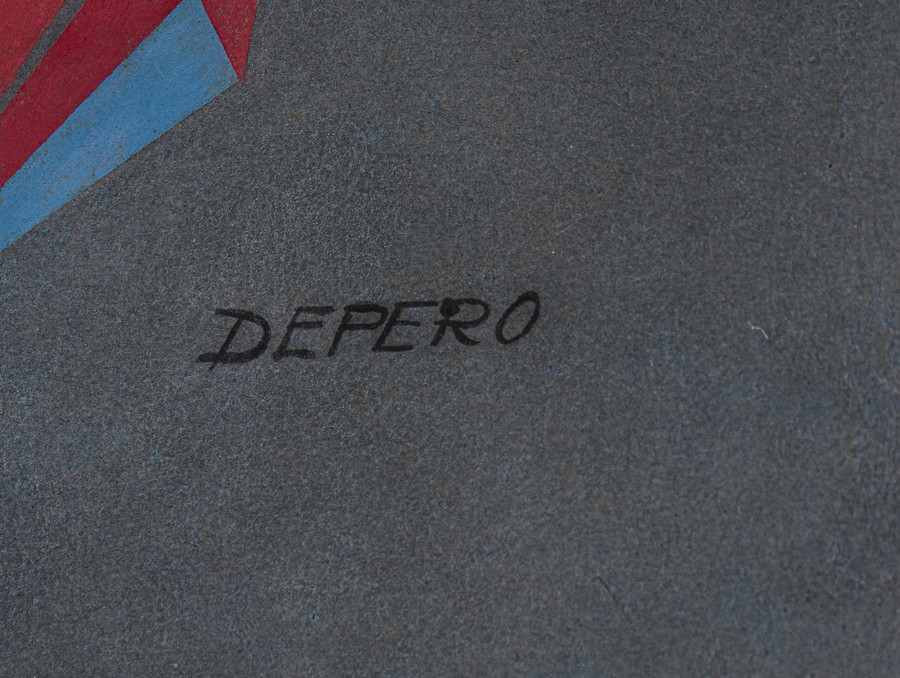 L'opera è accompagnata dal certificato di archiviazione dell'Archivio Unico delle Opere Futuriste di Fortunato Depero a cura di Maurizio Scudiero