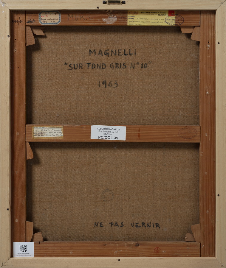 MAGNELLI ALBERTO (1888 - 1971) SUR FOND GRIS N.10. 1963. Olio su tela. Cm 54,00 x 65,00. firma e data