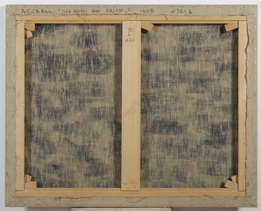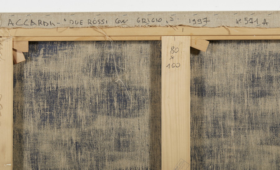 ACCARDI CARLA (1924 - 2014) DUE ROSSI CON GRIGIO. 1997. acrilico su tela. Cm 100,00 x 80,50. firma e data