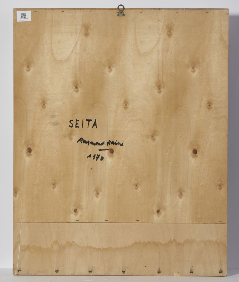 HAINS RAYMOND (1926 - 2005) SEITA. 1970. acrilico su compensato e carta vetrata montato su pannello di compensato di formica. Cm 80,00 x 99,00 x 11,00. sul retro: titolo, firma e data