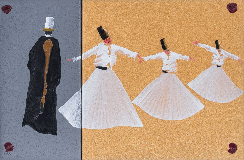 olio su 2 tele di linoleum cm, 40x20 e 40x40, totale cm. 40x60, firma e titolo al retro, dichiarazione d'autenticità dell'artista su foto.