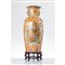 Vaso in ceramica decorata raffigurante "Scene orientali", base in legno.