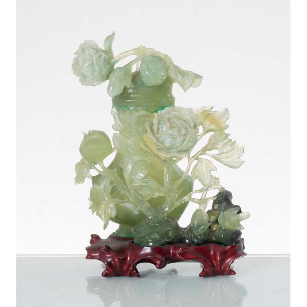 Bruciaprofumo in giada raffigurante "Composizione floreale e fogliacea" (usure).