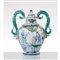 Vaso con coperchio e anse in ceramica smaltata e decorata raffigurante "La Madonna con Angeli" (usure).