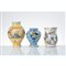 Due bocce in ceramica smaltata e decorata raffiguranti "Santo" e "Stemma", cannata in ceramica smaltata e decorata con decori a motivo floreale (usure).
