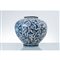 Grande boccia in ceramica decorata e dipinta a motivo floreale e fogliaceo nei toni del blu (usure e difetti).