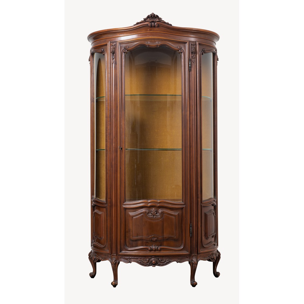 Vetrina a mezza luna ad un'anta in legno di noce.