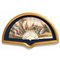 Ventaglio con stecche in osso e pagina in carta dipinta a mano raffigurante "Paesaggio con figure" entro ventagliera del XX secolo e ventaglio con stecche in osso e pagina in tessuto con paillettes dorate raffigurante "Paesaggio".