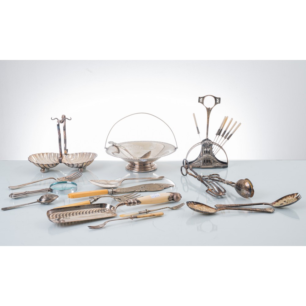 Diciassette oggetti vari da tavolo in sheffield, alcuni dei quali con manici in osso.