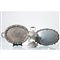 Vassoio con manici in metallo argentato riccamente cesellato, vassoio in metallo argentato con piano specchiato e samovar in peltro (usure).