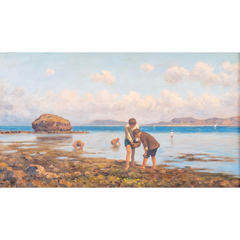 PITTORE DEL XX SECOLO, Pescatori di telline, Olio su tavola