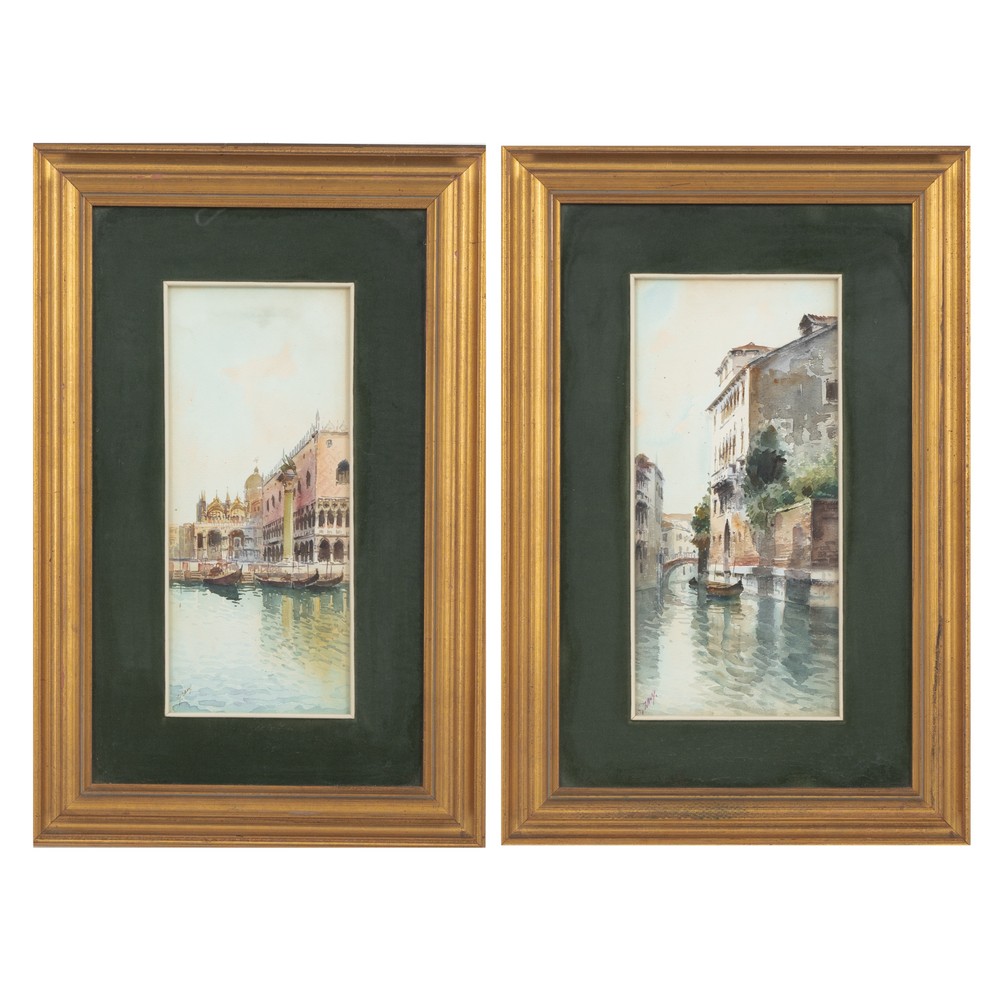 GIULIO ZAGO, Scorcio di Venezia (X2), Due acquarelli carta