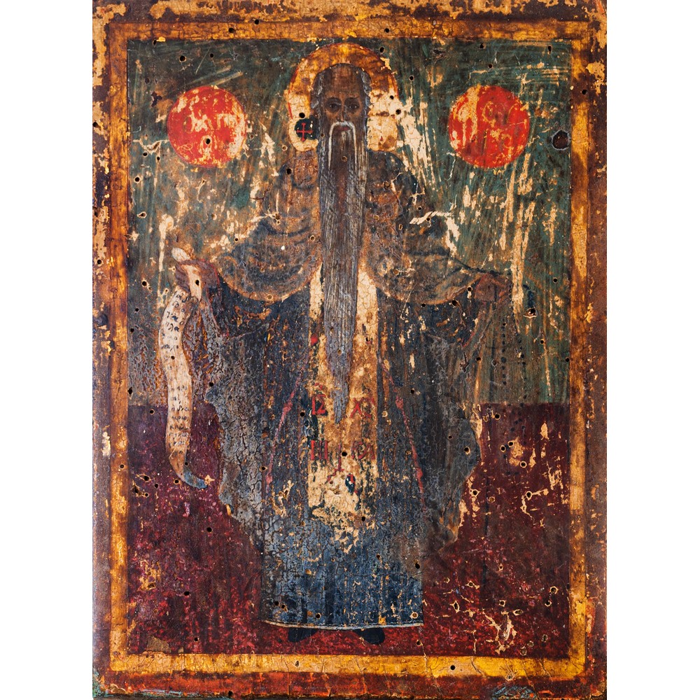 Icona dipinta su legno raffigurante "Santo".