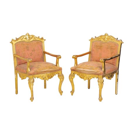 Coppia di poltrone Luigi Filippo in legno dorato ad oro zecchino.