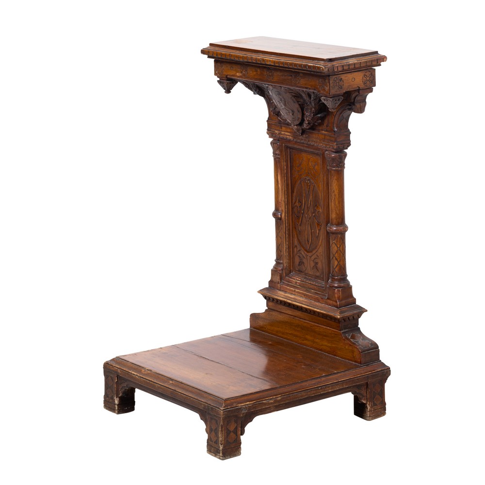 Inginocchiatoio umbertino in legno di noce.