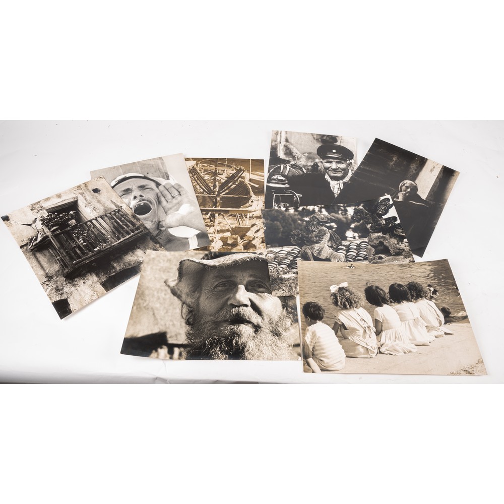 OTTO FOTOGRAFIE ORIGINALI DEL FOTOGRAFO FILIPPO MARTORANA. Le fotografie, in bianco e nero, degli anni 60 del ‘900 ritraggono aspetti e personaggi tipici siciliani. Misure cm 40 x 30,5.