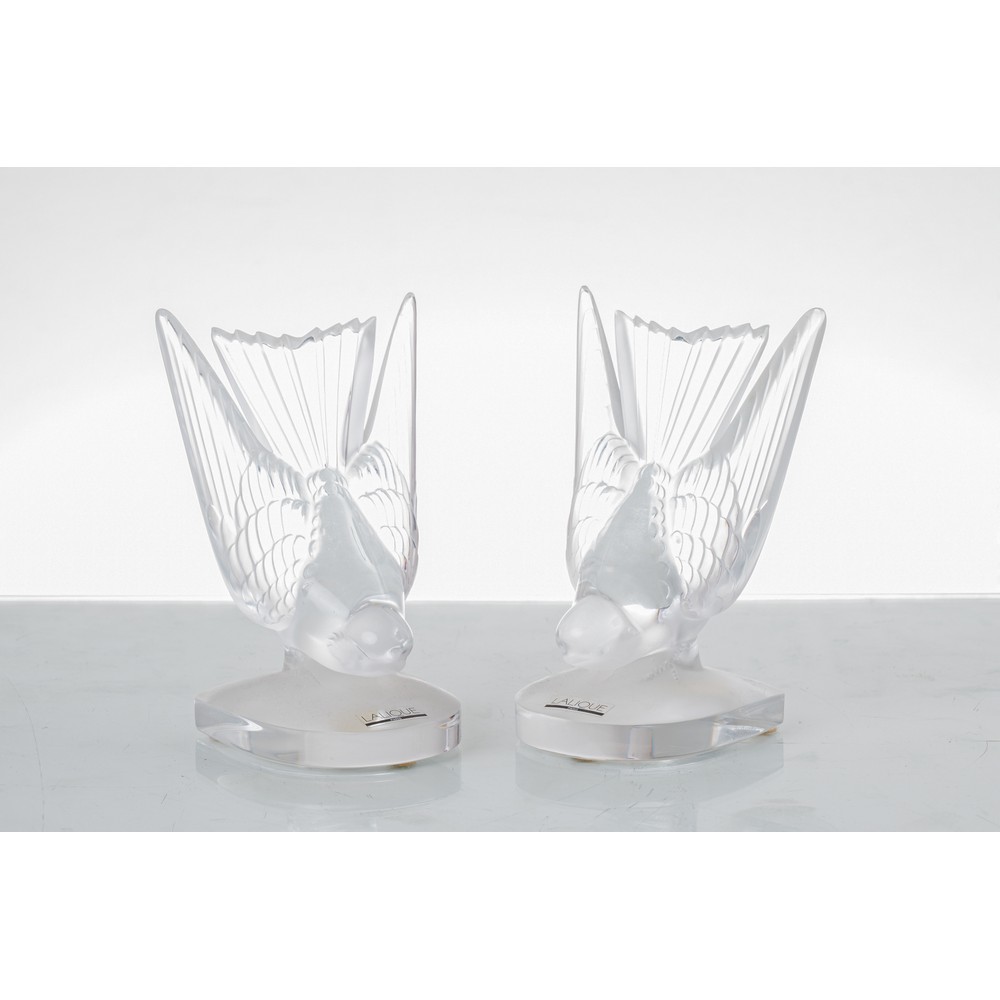 Coppia di fermalibri in cristallo raffiguranti "Rondine".