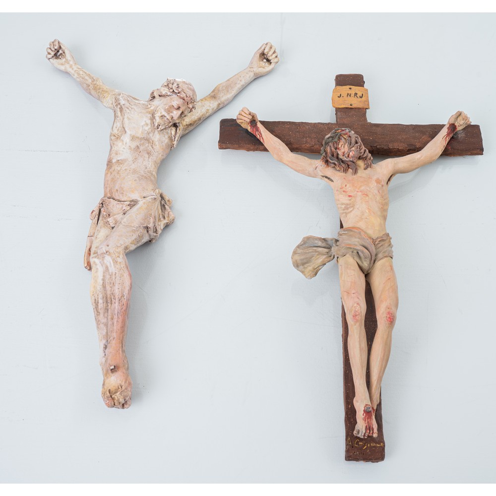Due sculture in terracotta raffiguranti "Cristo" (usure).