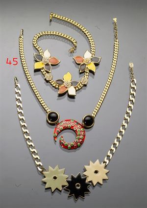 LANCETTI Collana dorata con ciondolo centrale smaltato rosso e con piccoli smalti verdi, rossi, neri, anni '80 Cm 41 1980's gold colored chain necklace with central red and green enameled pendant