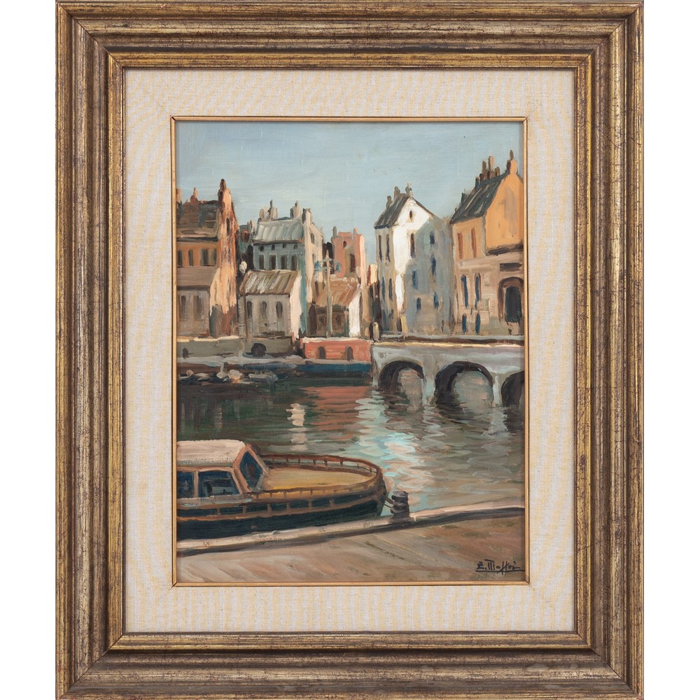 ENNIO MAFFEI, Case e ponte, Olio su masonite