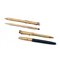 Due portamine a quattro colori laminate oro, Aurora 88 Duo Cart stilografica in resina lacca nera, laminata in oro e Cross penna a sfera laminata oro (usure).