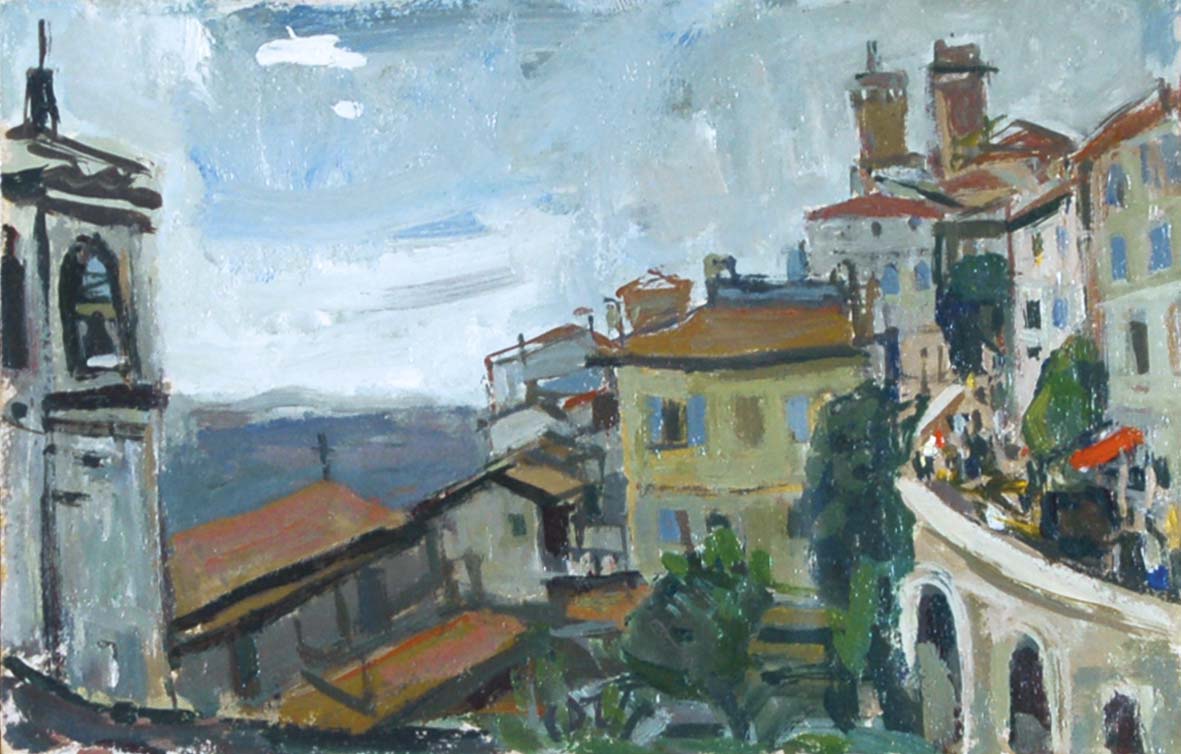 DALLA ZORZA CARLO Venezia 1896 - 1977 S. Marino 1954 olio su cartone 10x16 cm firma in basso al centro data e titolo al retro esposizioni Galleria Ponte Rosso Milano 1980 - etichetta e timbri al retro