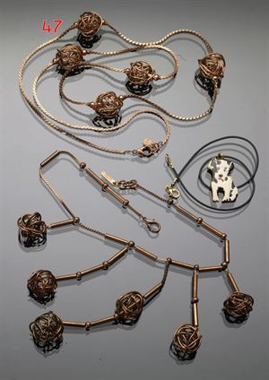 KRIZIA Collana lunga in rame a cinque elementi sferici inseriti, anni '80 Cm...