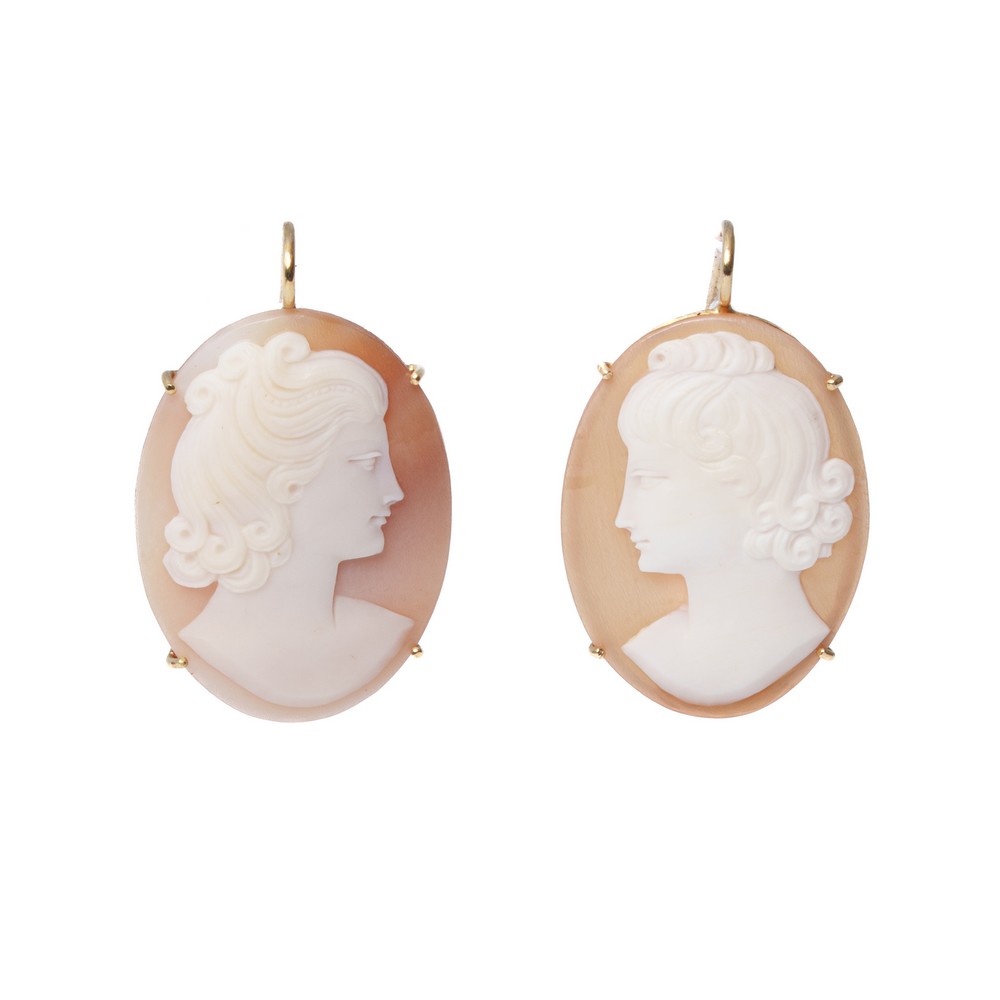 ORECCHINI in oro giallo 18 KT con cammei raffiguranti "Mezzi busti femminili" (g. 9,70).