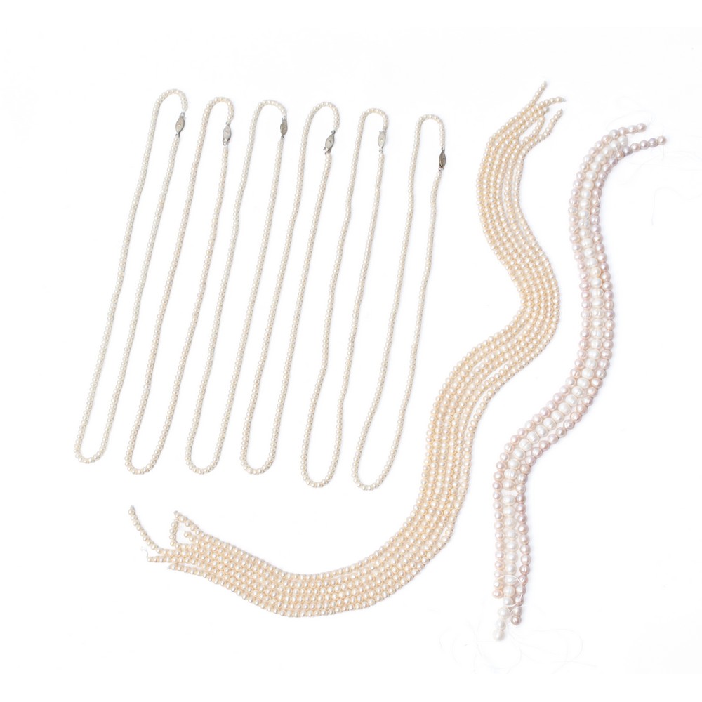 Sei fili di perle biwa, sei collane di perle biwa con chiusura in metallo e tre fili di perle biwa (g. 356).
